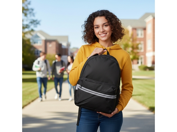 Comes with one main spacious compartment with a zipper, a small front pocket with a zipper, one side mesh pocket, adjustable padded straps and 2 luminous strips across the front pocket.